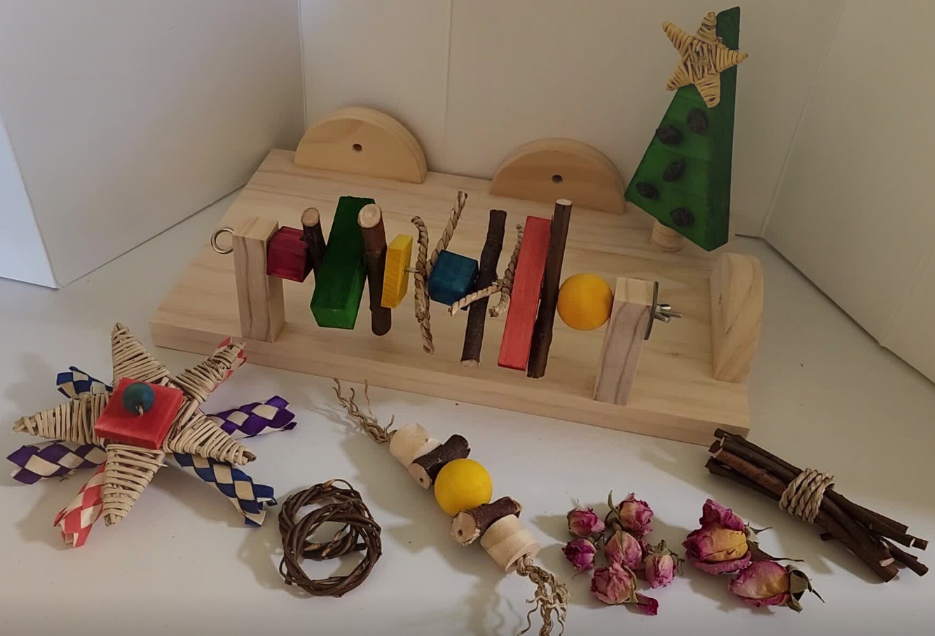 * A large fun vine star chew toy with bamboo shredders, and colourful pine pieces